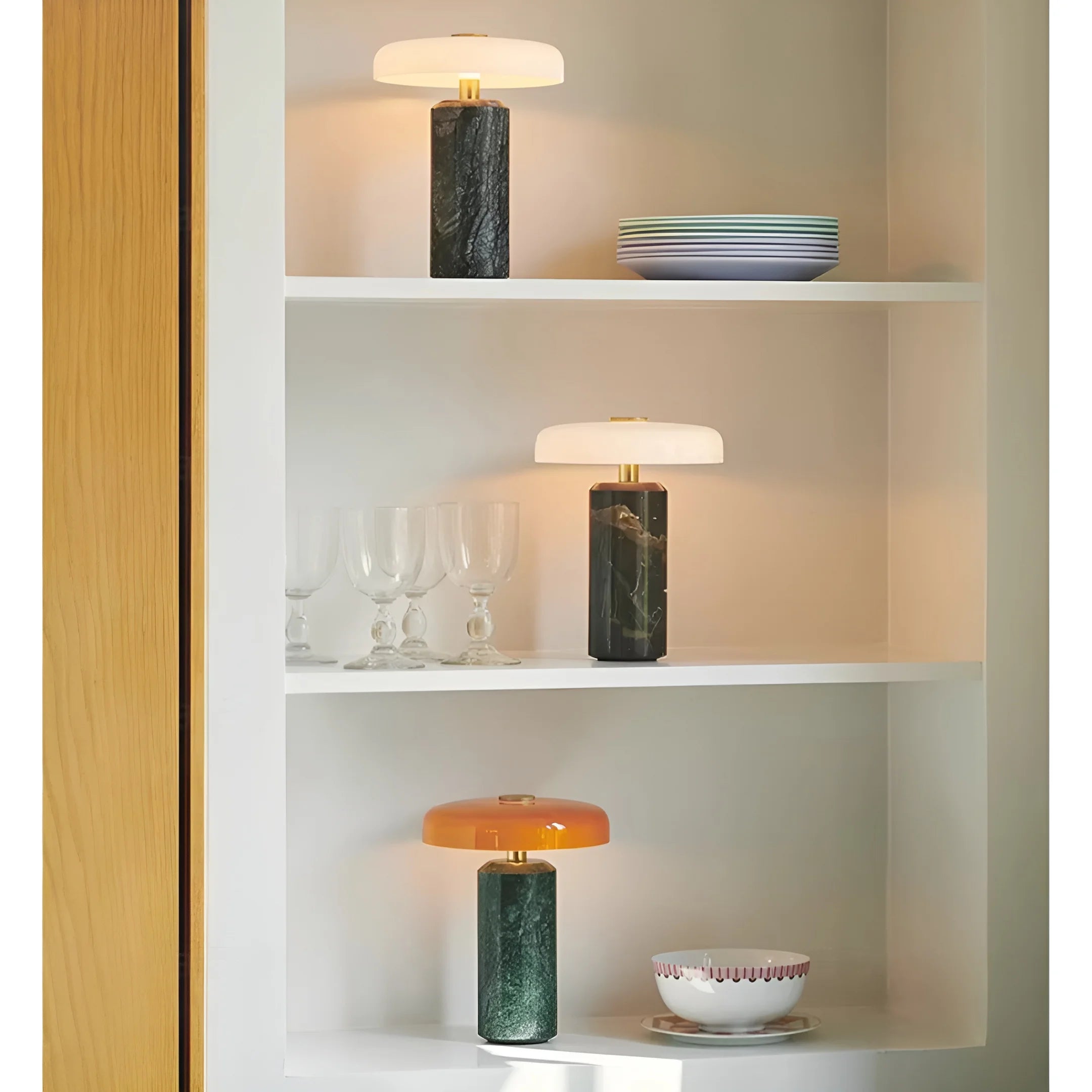 Crafted with natural marble, each lamp features unique stone patterns, making every piece one-of-a-kind while adding a refined decorative accent to contemporary interiors.