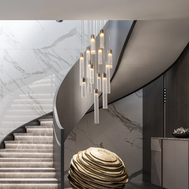 Whether you’re looking to brighten up a staircase or create a welcoming atmosphere in your entryway, this glass chandelier brings an unparalleled charm. Its sleek silhouette effortlessly complements minimalist interiors, showcasing a harmonious balance of style and functionality.